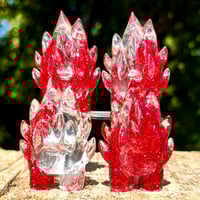 The Red Glitterati Spark is a 2.5" tall hand cast resin figure. This piece features striking metallic red glitter poured in clear resin. Density and distribution of glitter varies from piece to piece.